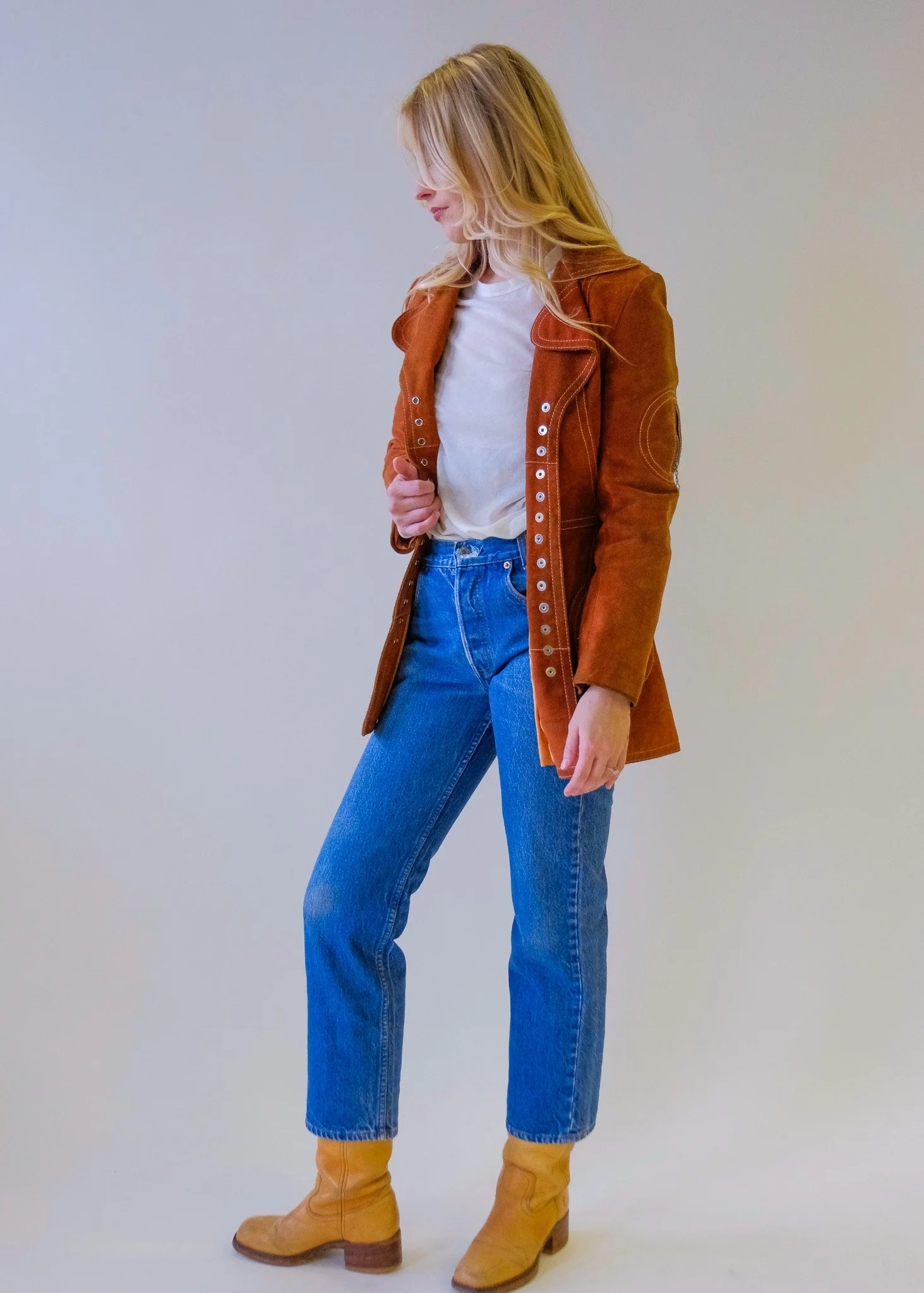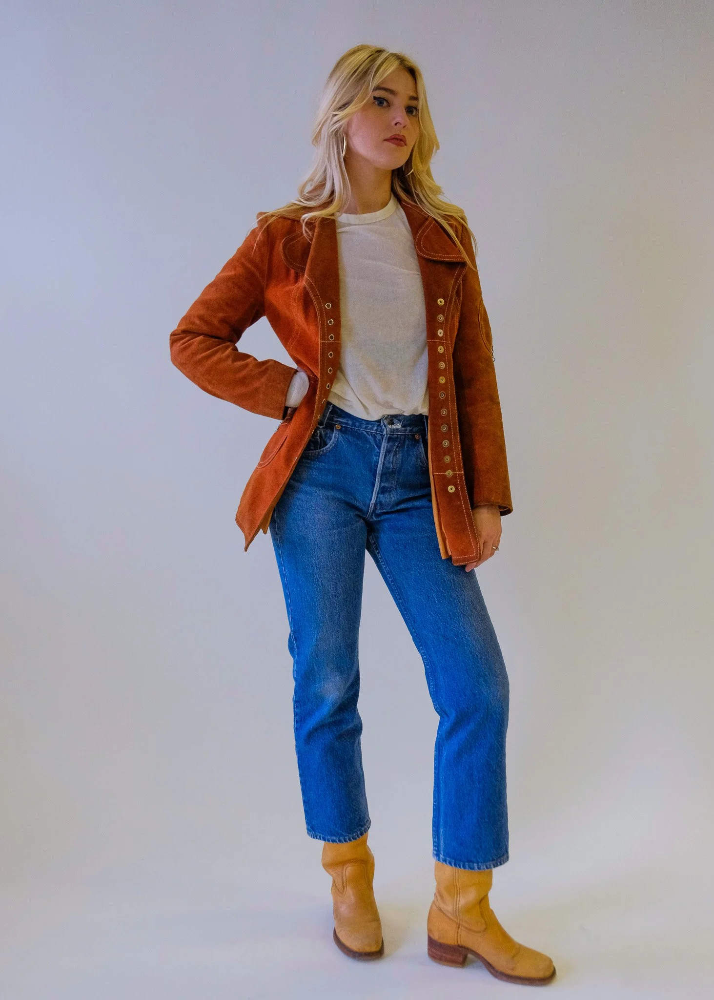 Distressed Levi’s 505 mid rise straight leg jeans. Front zip with top button closure.