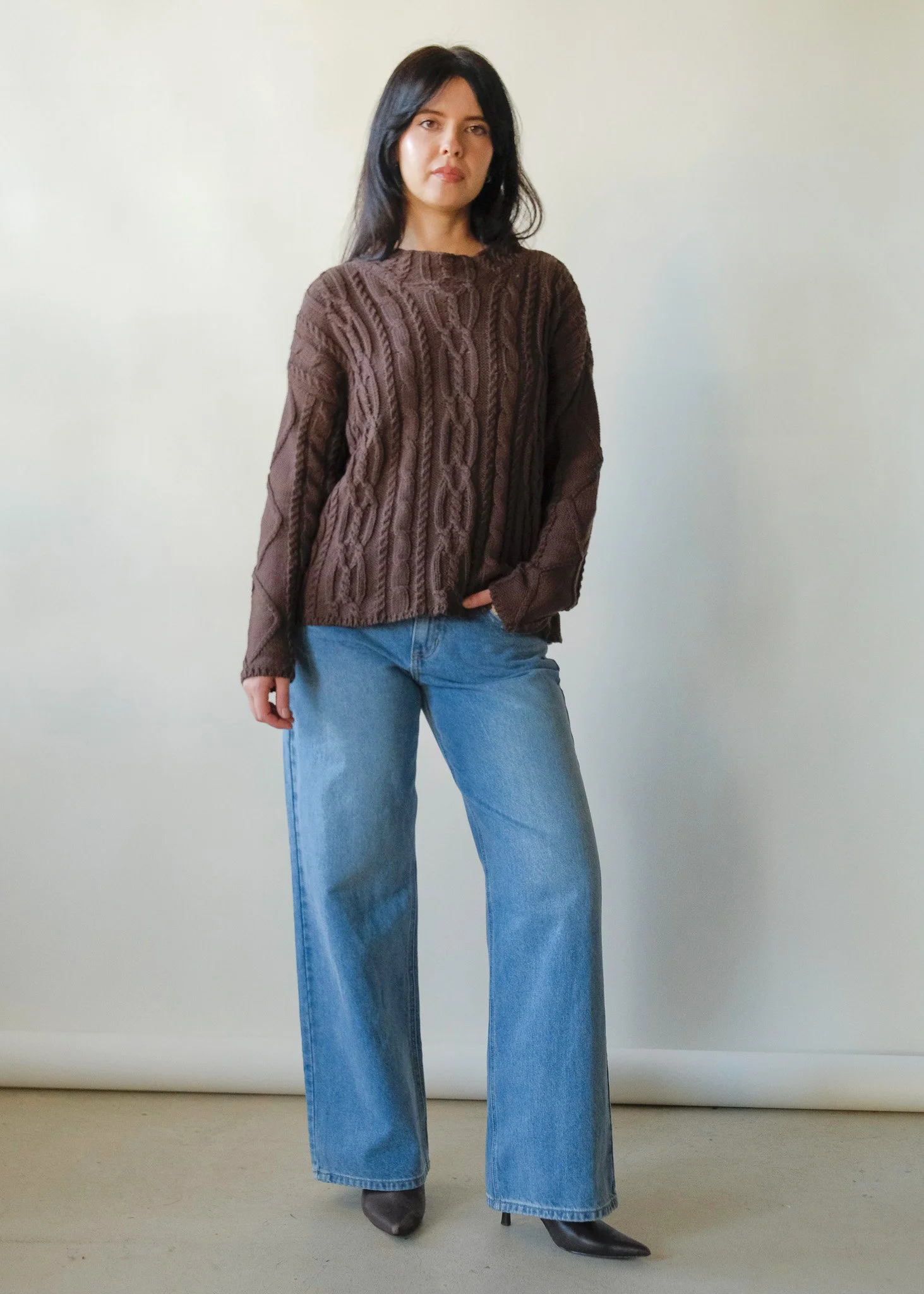 Full length dress with a fitted silhouette and ruffled sleeve, subtle flared skirt. Semi sheer fabric with back keyhole closure, we recommend sizing up.