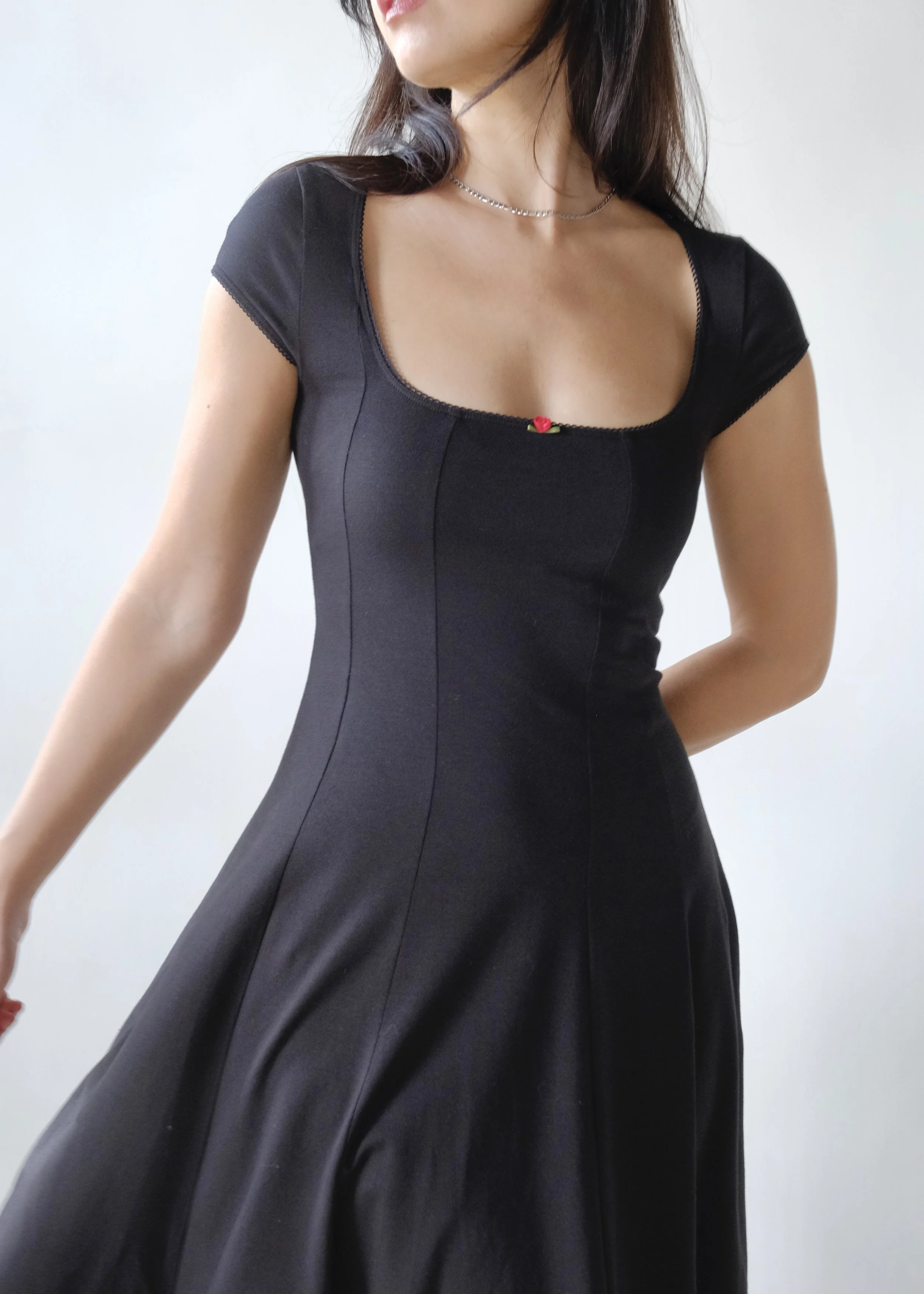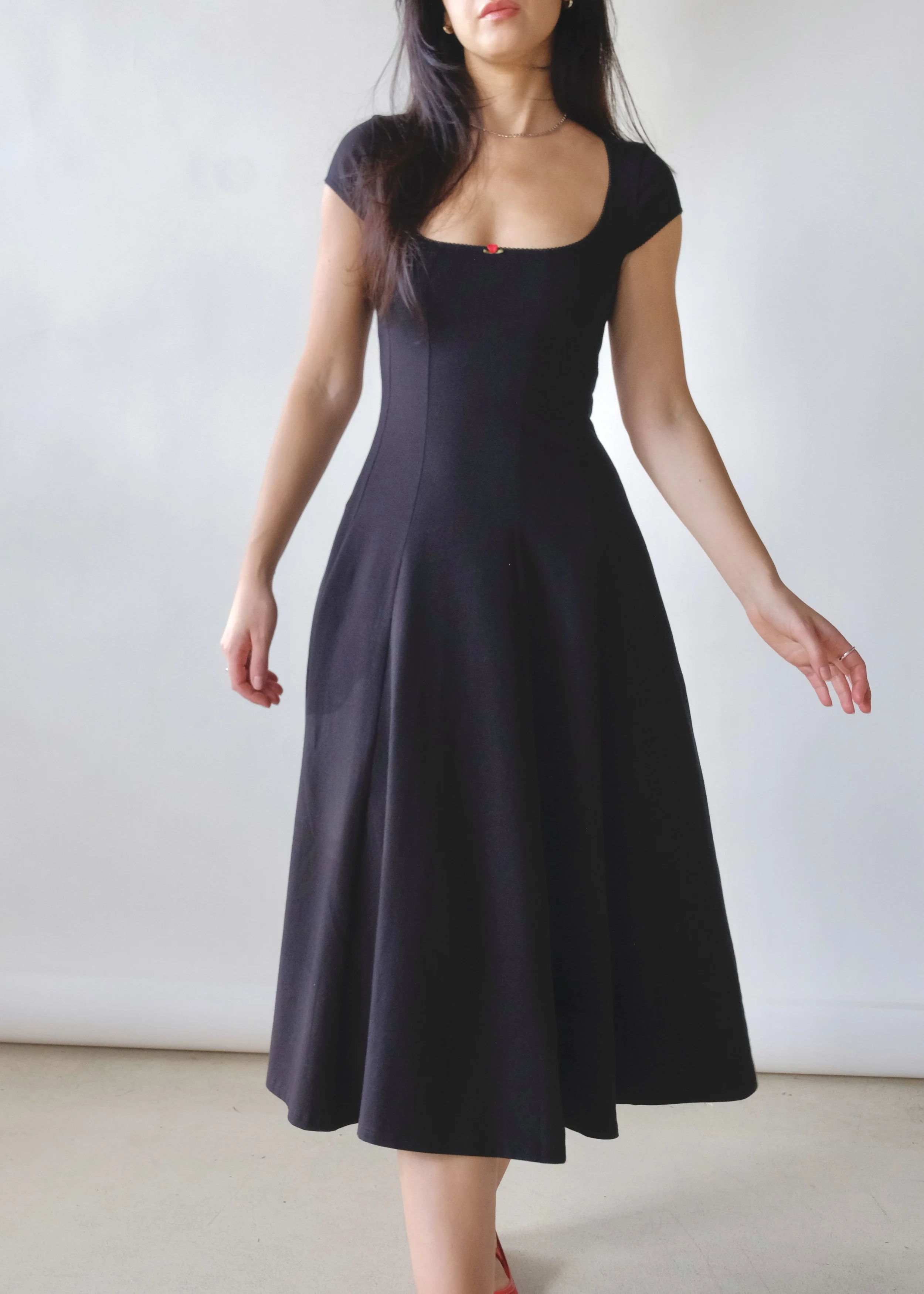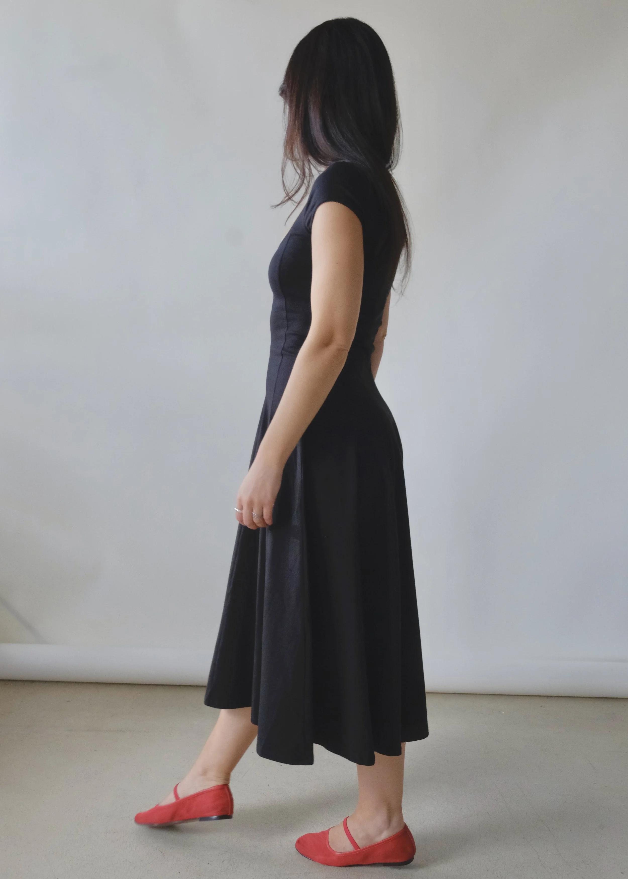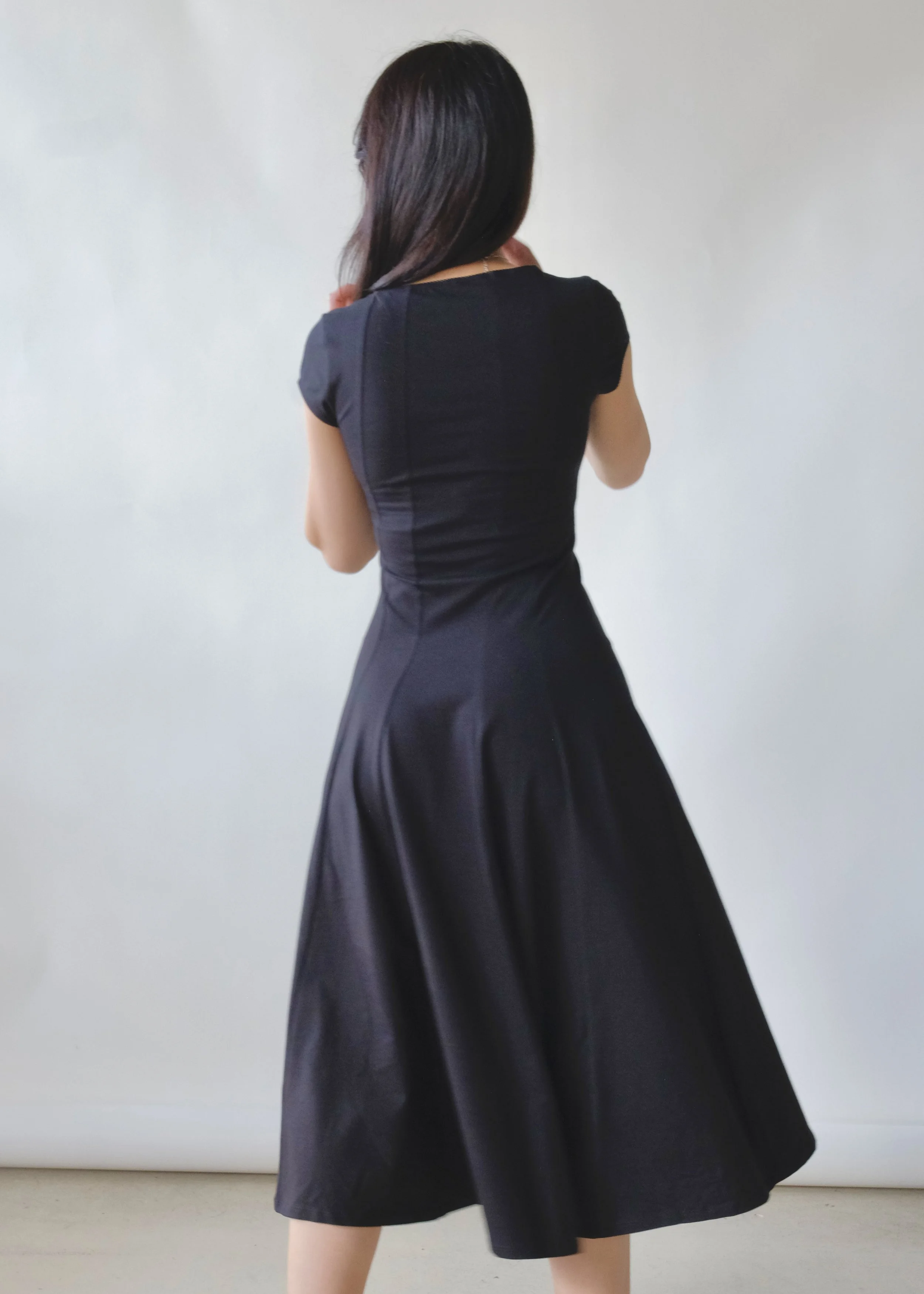 An a-line fit with patch pockets, center front slit and metal zipper closure. Fully lined, fits true to size.