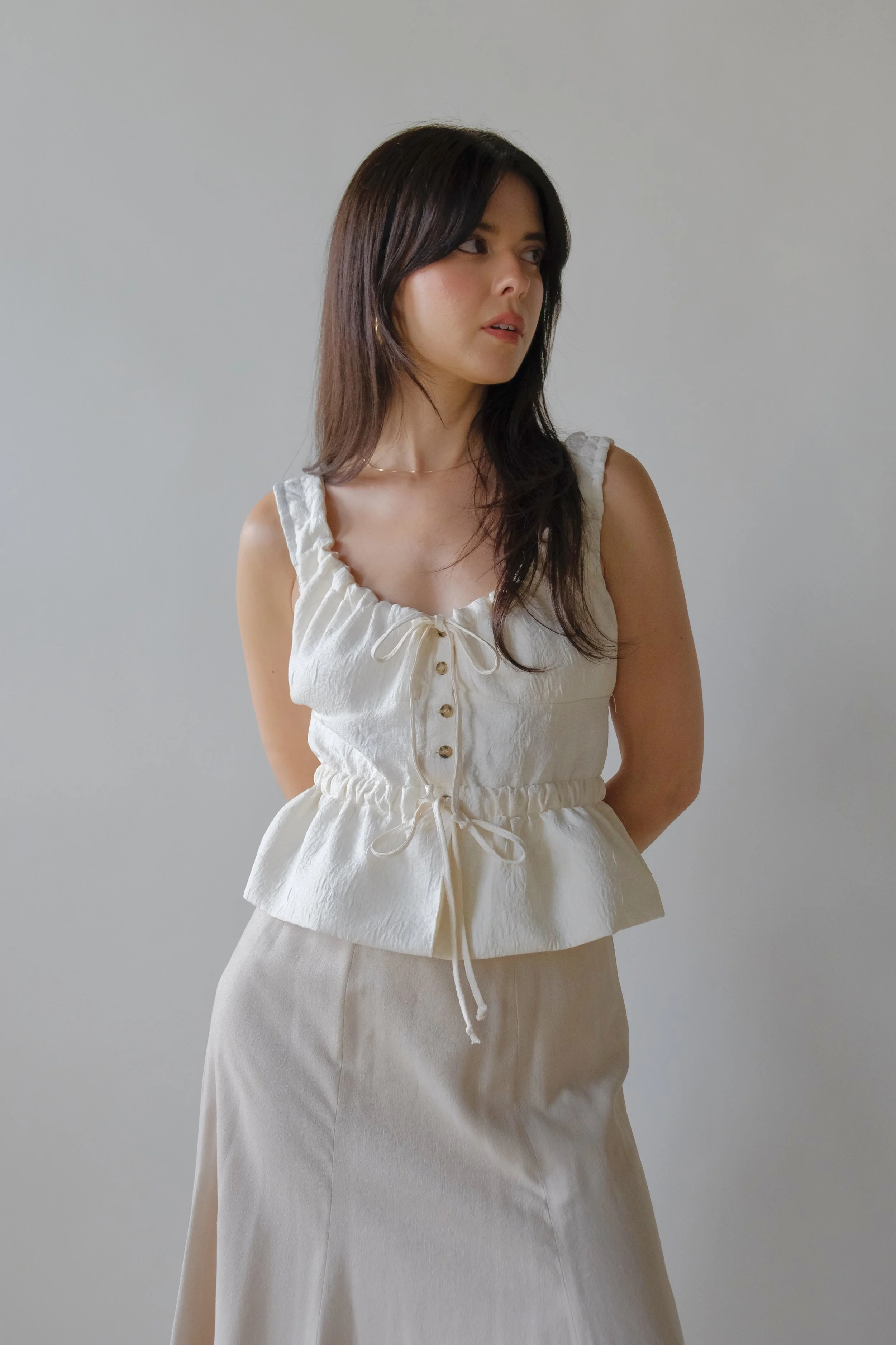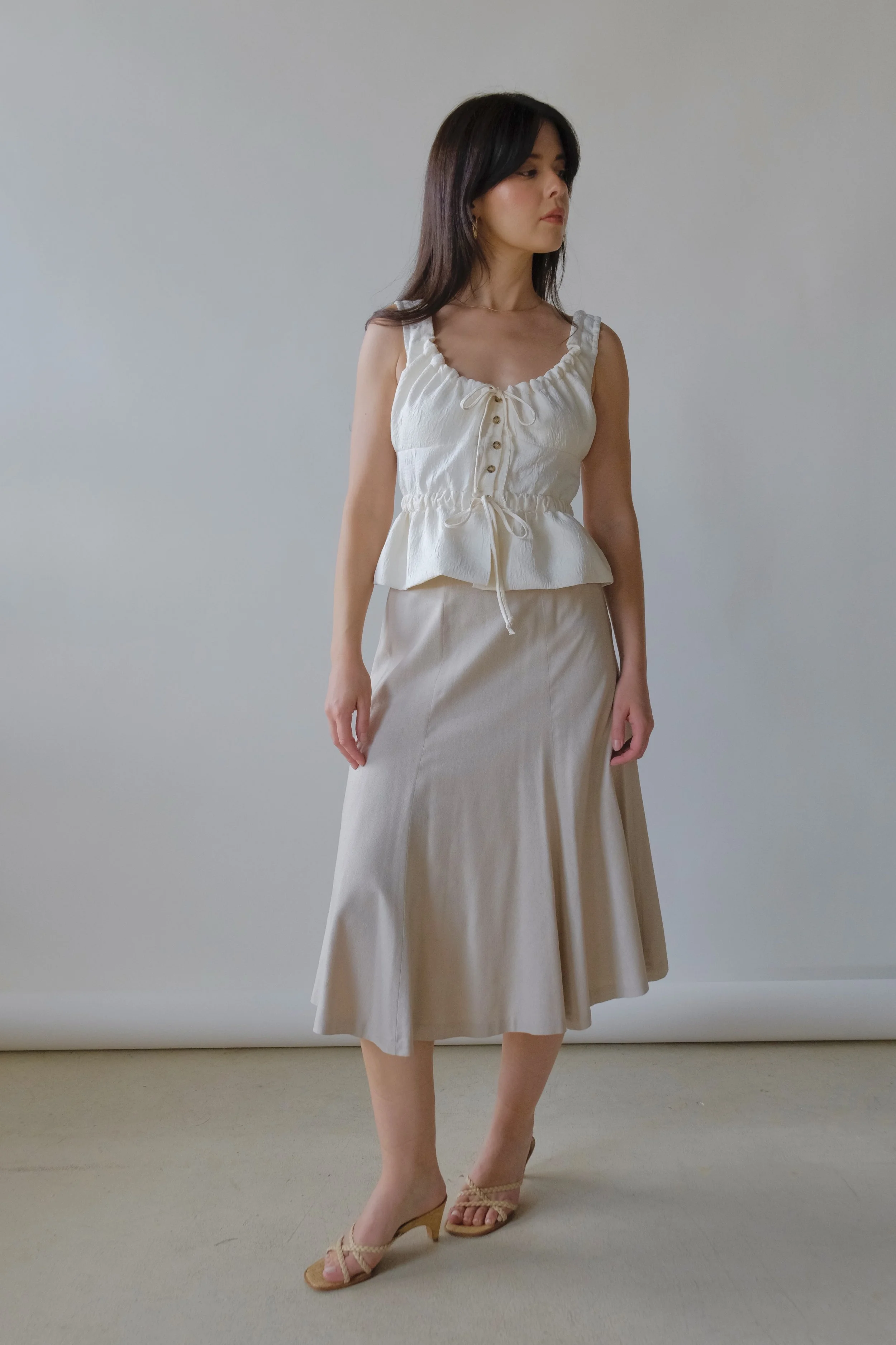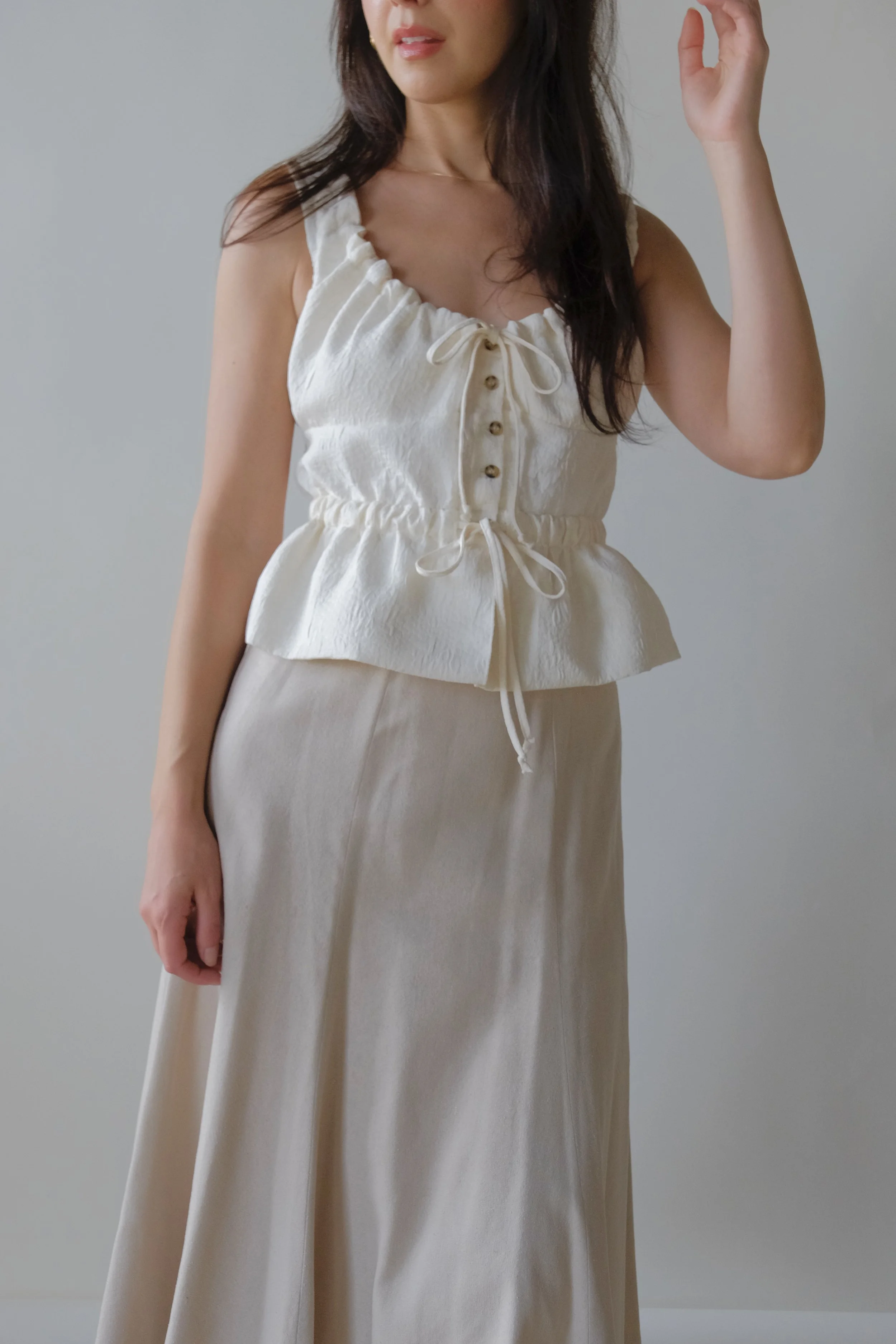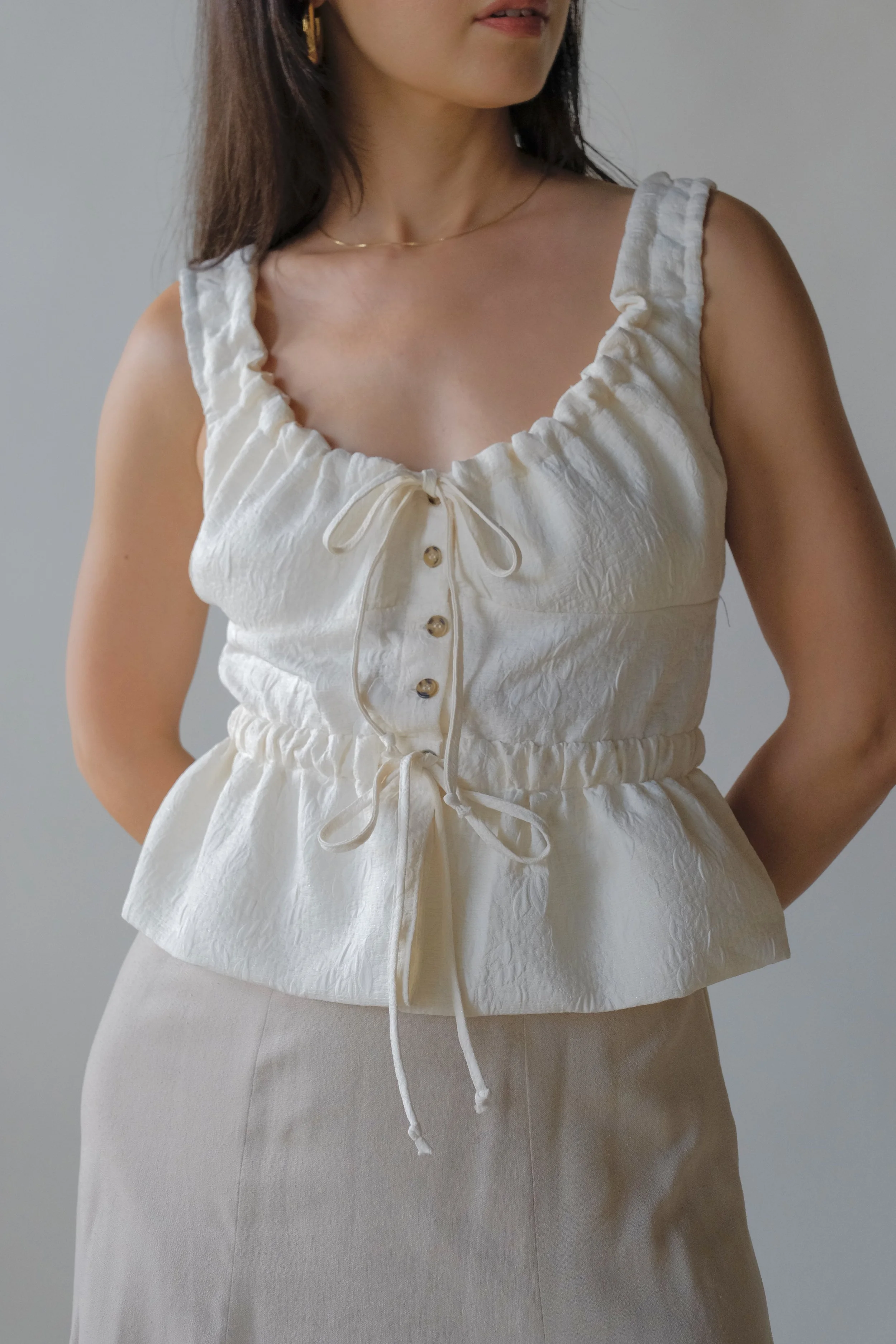 Oat woven button up. Best fit for sizes xs-m.