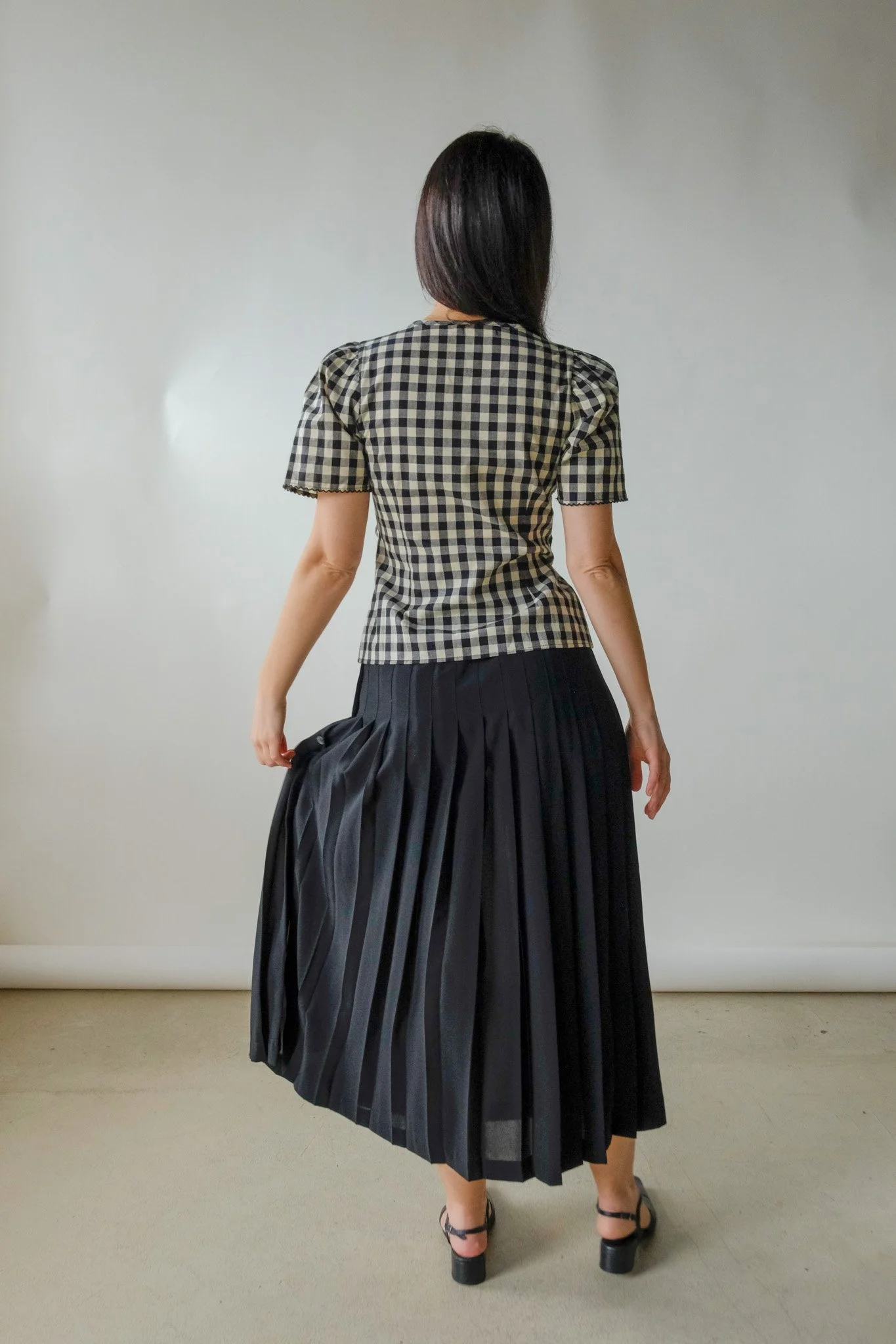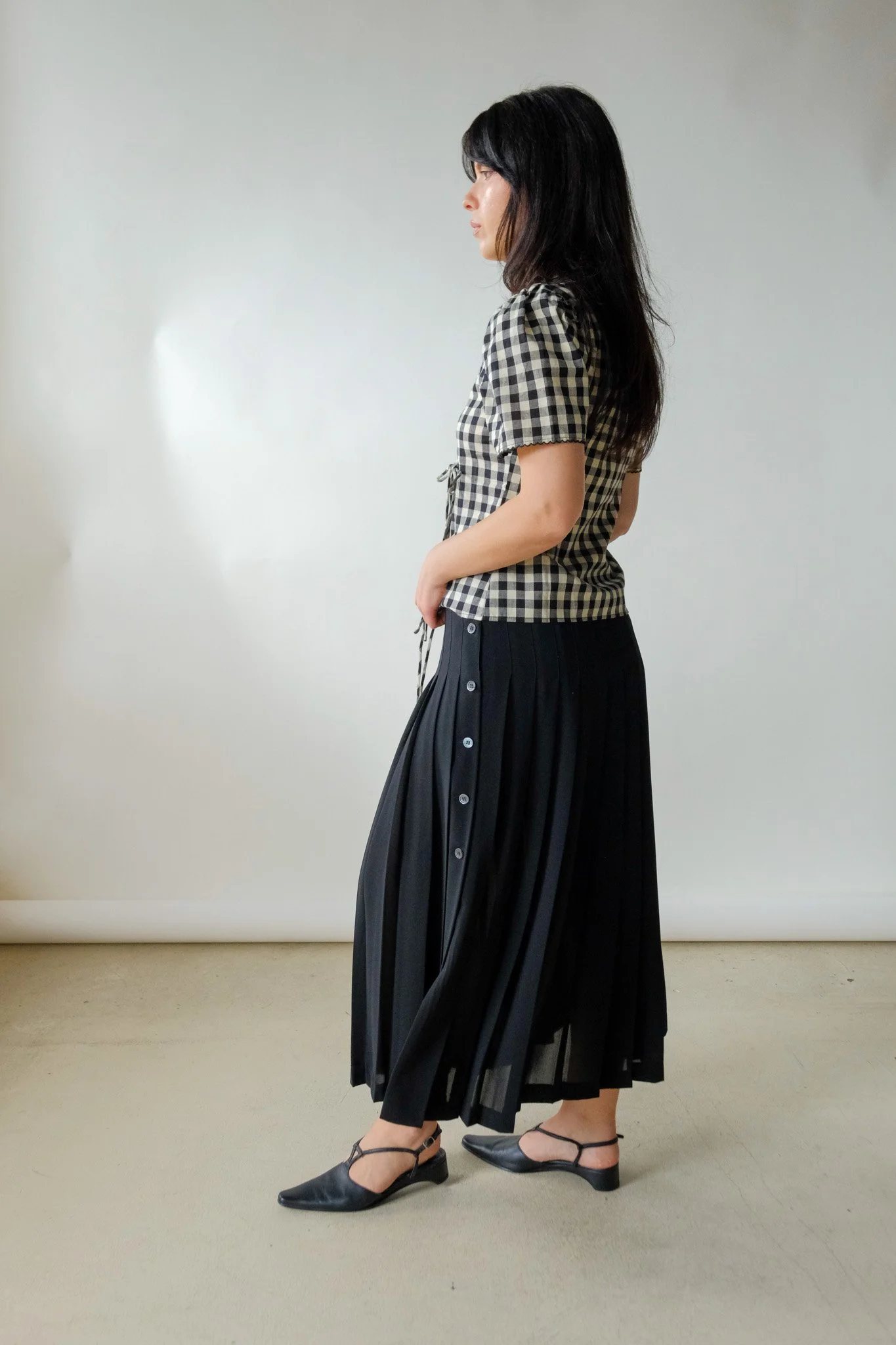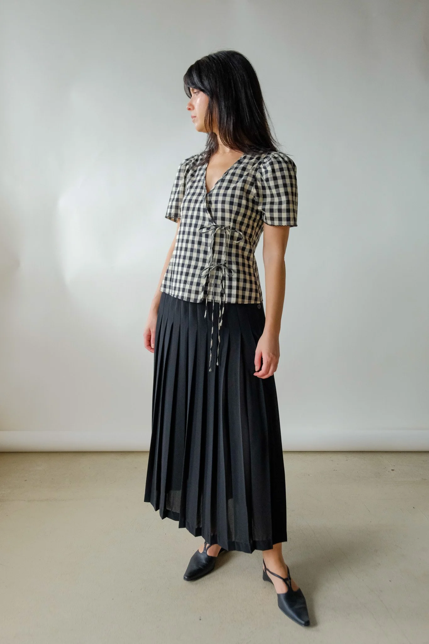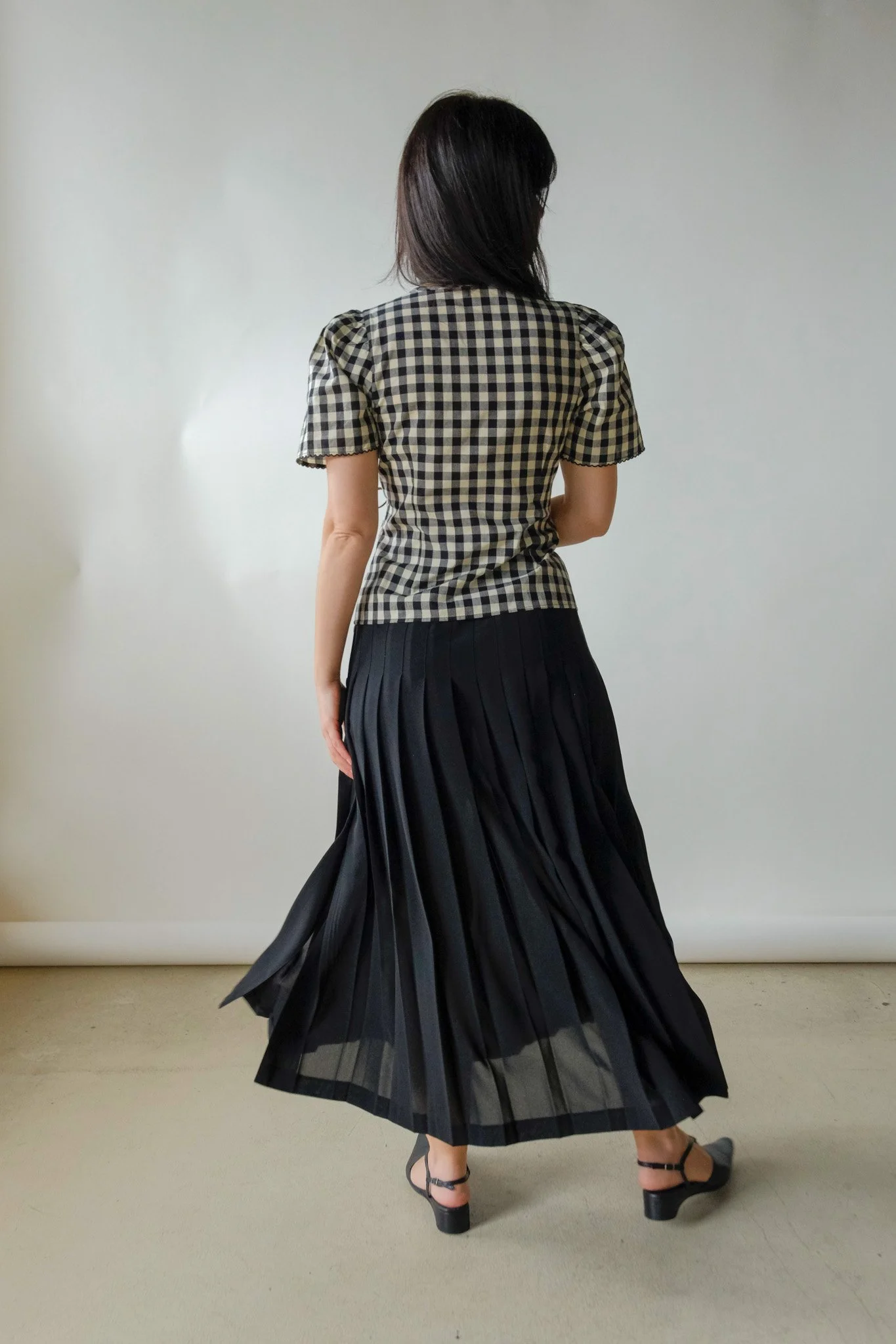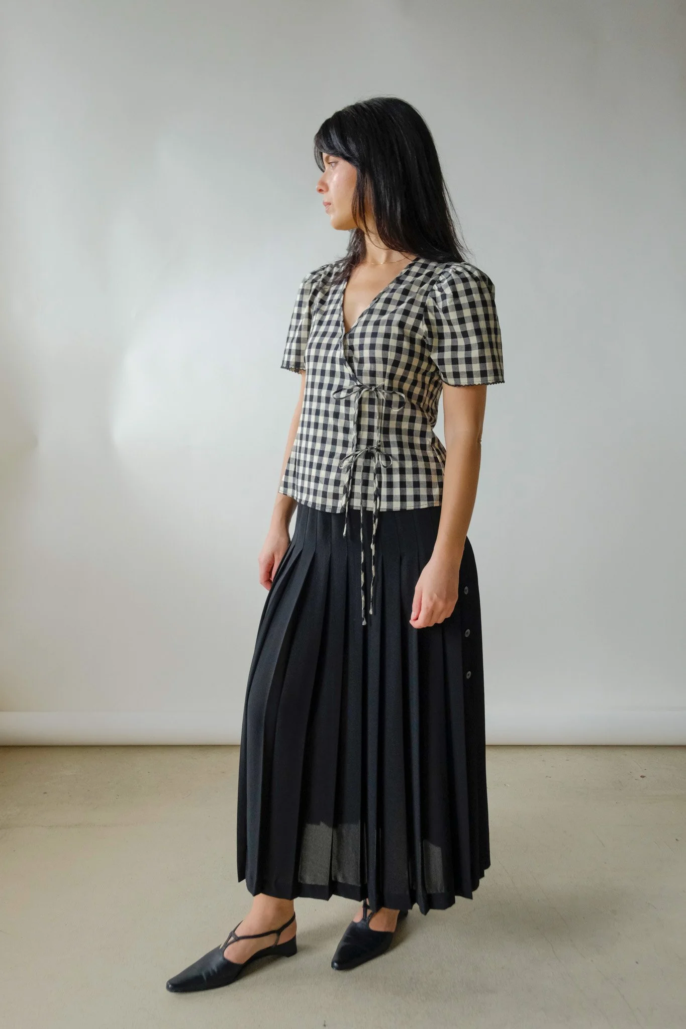 Modern ivory semi sheer ruffle trim blouse. Removable tie at neck. Best fit for sizes s-m.