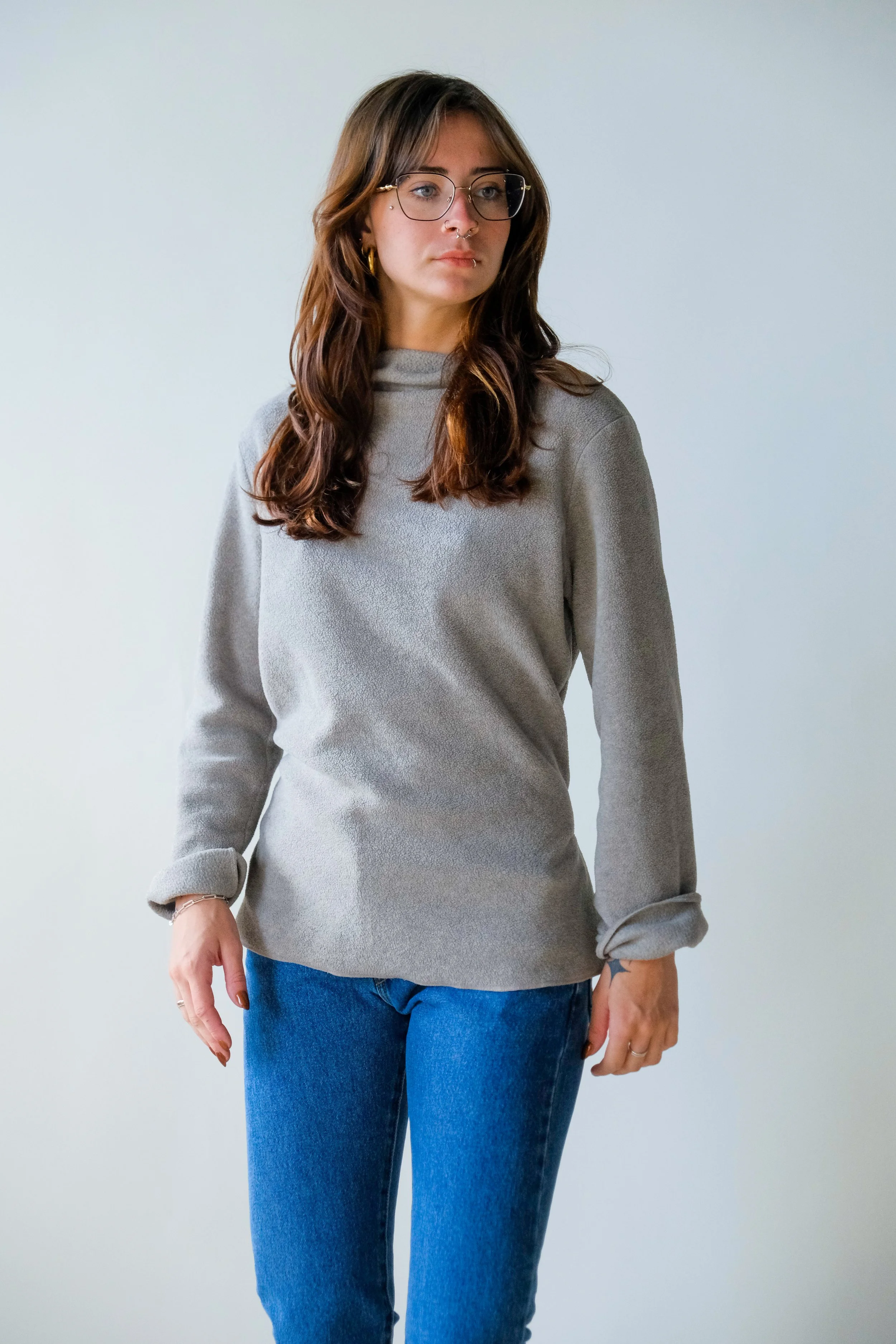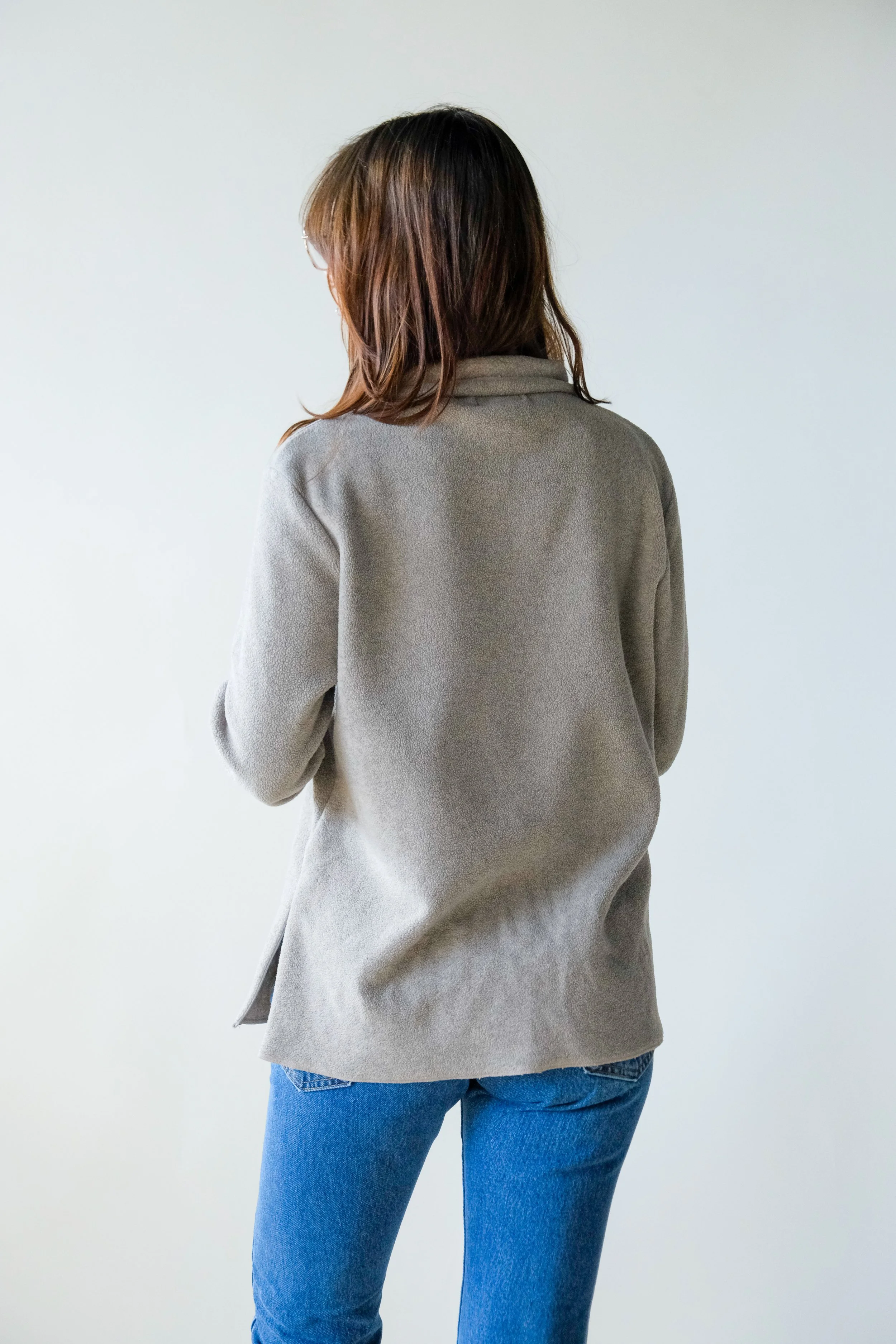 Taupe and white stripe button up. Best fit for sizes s-l.