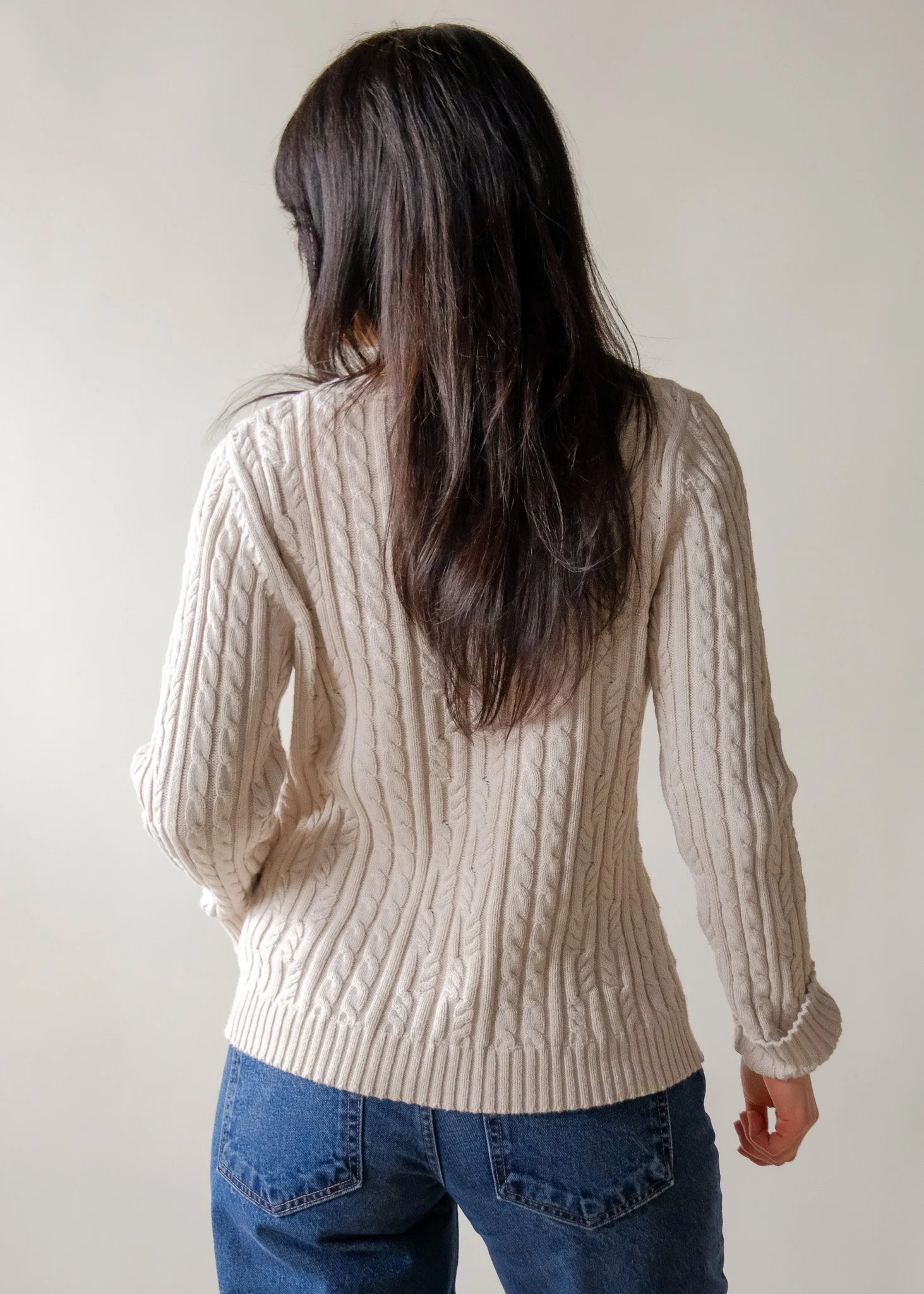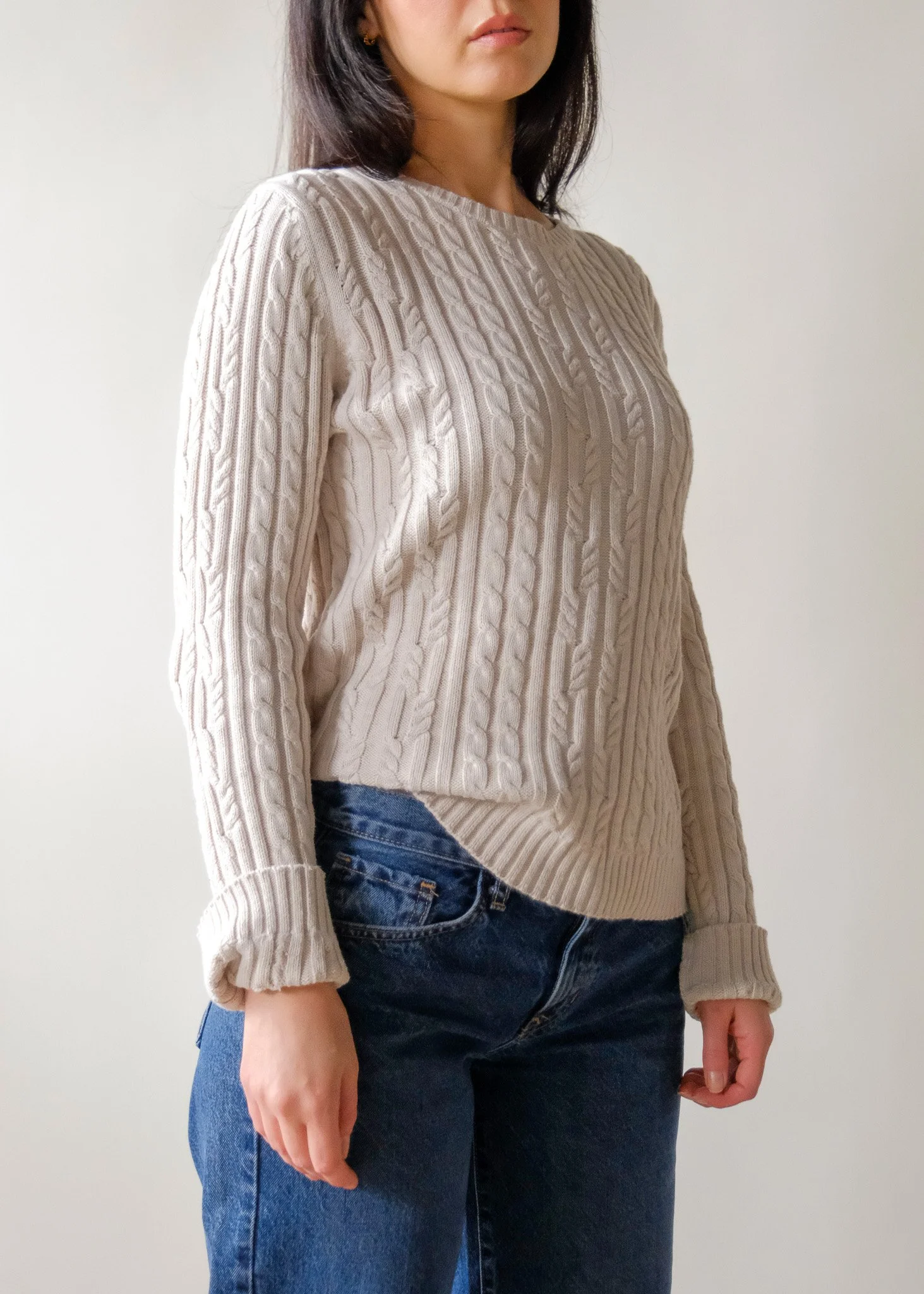Ivory wool cable knit pullover. Best fit for sizes xs-m.